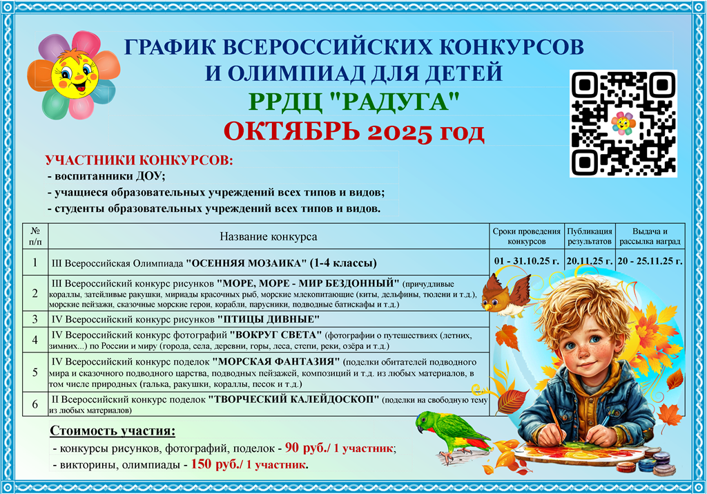 Главная » 2025 » Октябрь » 1 » ГРАФИК Всероссийских конкурсов для ДЕТЕЙ на ОКТЯБРЬ 2025 года